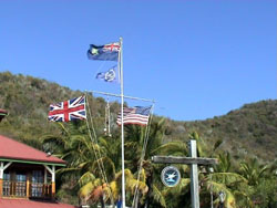 Ci rechiamo subito al negozietto di souvenir: qui paghiamo $25 di ormeggio alla boa e acquistiamo ad un prezzo decente un'enorme bandierona delle Isole Vergini Britanniche per il fratello di Max.
